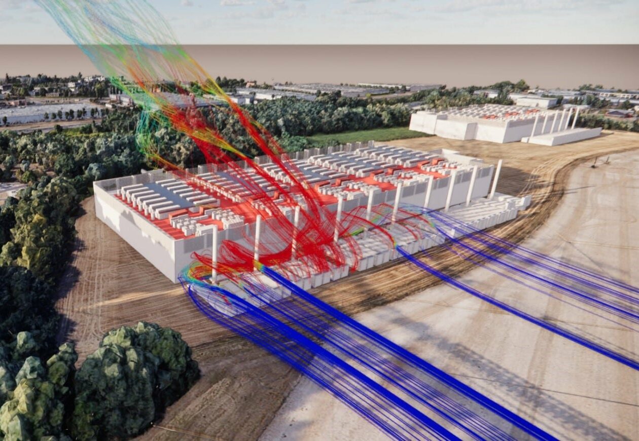 Um estudo CFD (Computational Fluid Dynamics) é crucial para estes centros de dados em hiperescala, de modo a otimizar a circulação do ar e a refrigeração, minimizando assim o consumo de energia e maximizando aeficiência térmica.