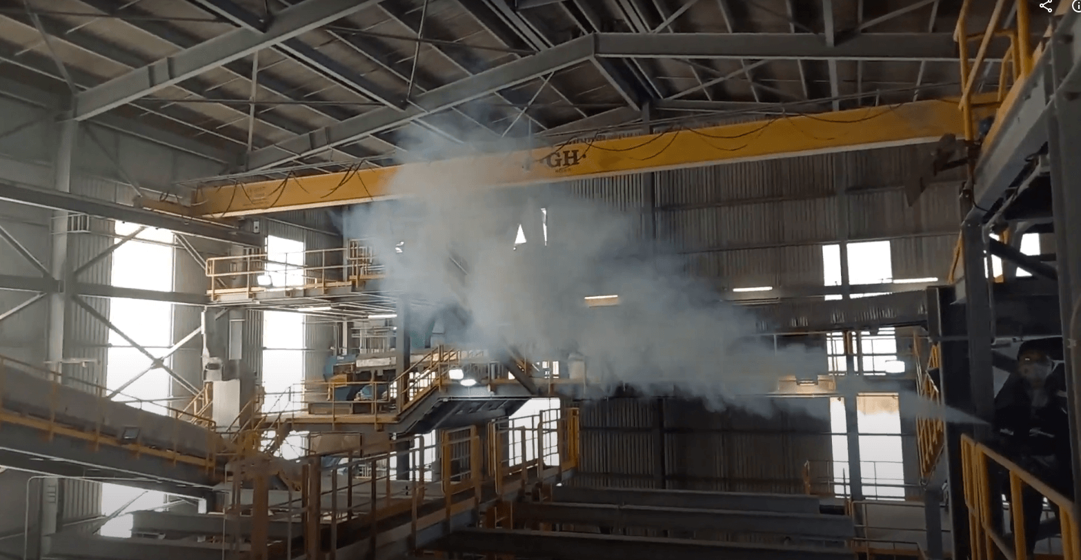 Exemplo de testes de fumo para identificar a recirculação de massas de ar quente na oficina, causando um sobreaquecimento significativo no verão.